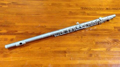 私がフルートを吹くことを知っていた彼ら夫婦は、その日に彼らの新居へ連れて行き、「このフルートで一曲!」とリクエストしました。「初夜に家へ行くのは…」と言われるかも知れませんが、決して私が押しかけた物ではありません。たぶん、バロック系の練習曲を何曲か披露したと思います。彼らはそれがとても気に入り、感動して二人が使っていたこの楽器を「持って行け」と、私の荷物に入れました。