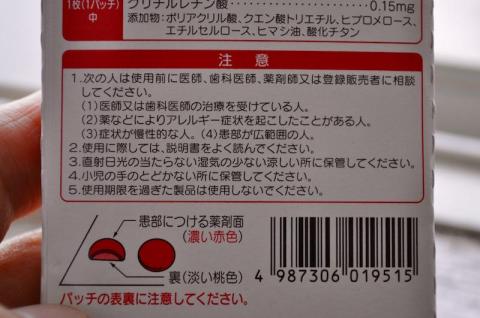 この時にくれぐれも注意したいのは、シートとパッチの間に指を入れて、パッチの表側を患部に向けることです。 本能的に透明シートと密着している方を患部に乗せたくなりますが、逆ですよ〜。