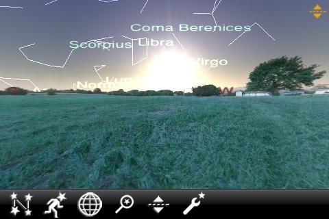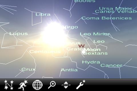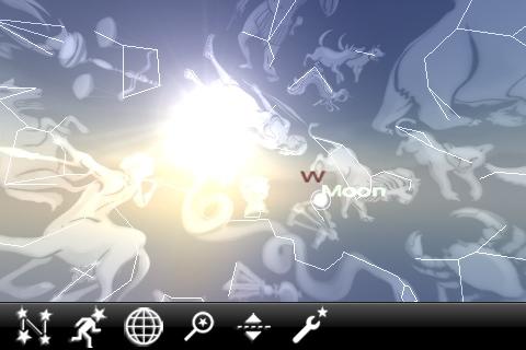 iPhone4のGPSとジャイロセンサーを使い、今いる場所・時間の星座の位置が分かります。