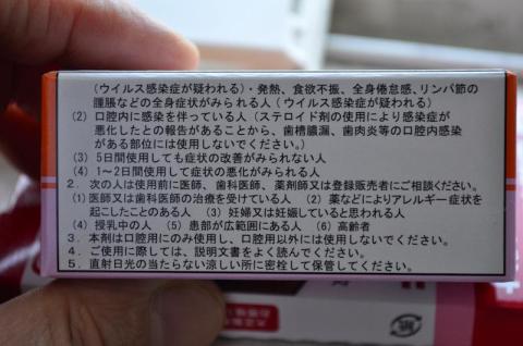 私は就寝前に塗ることが多いのですが、日中に使う場合は、塗布後30分程度は飲食を控え、また舌先等で探ったりせず、そっとしておくことが大事だと思います。