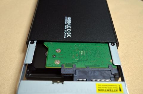 ちょっとケースの加工精度が悪く、HDDが途中で引っかかります