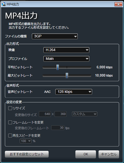 MP4ファイル出力1つとっても細かく設定出来ます。これはミドル旧の使い方をするときには十分ですね!