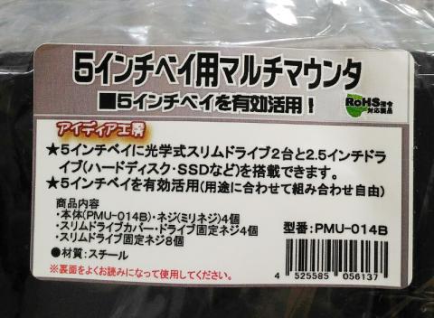 こちらの商品なのですが、5インチベイに2.5インチHDD/SSDをマウントできるようにする商品です。