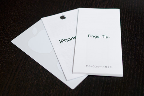 右から、クイックスタートガイド、重要なお知らせ、リンゴのシールが入っています。