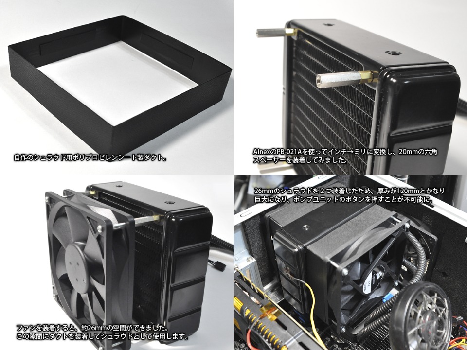 考えれば、あれだけラジエターとファンが密接していると中央の軸カバーのところには風が起こりませんよね。