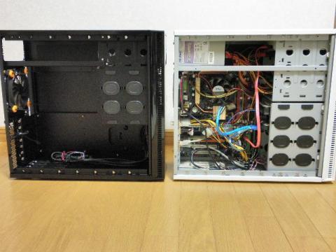 今回大きく変わったのが、5インチベイが4→2になったこと。これは後に触れますが、内部スペースの確保のために犠牲になったと言えます。この点ですが、現在ブルーレイドライブ1台あればすべてのメディアに書き込み出来ますので、問題ないでしょう。5インチ-3.5インチ変換アダプター付きのベイもなくなりました。また化粧パネルもなくなりました。