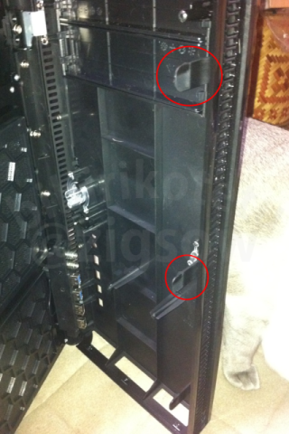 開くときはサイドパネルを外して上記写真の赤い○に囲まれているような