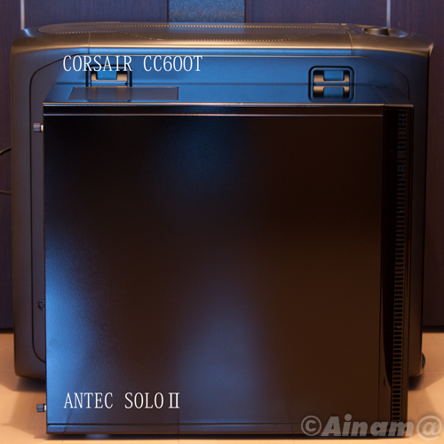 それでは、CORSAIR CC600Tとのサイズ比較写真をどうぞ。