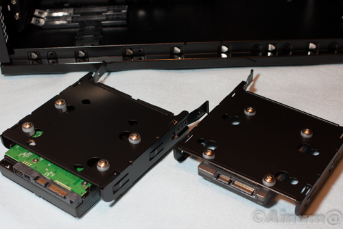 HDDはシリコングロメットで防振対策されてます。SSDも同じ様に固定出来ます。