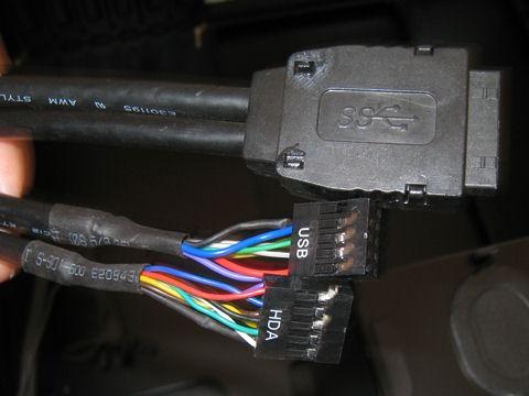 フロントI/O用のコネクター、上からUSB3.0、USB2.0、オーディオI/O