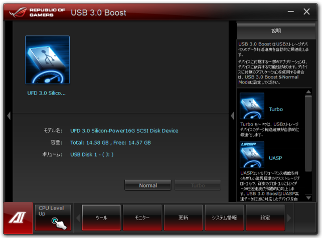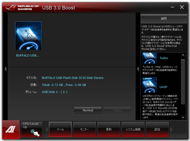 ASUS USB 3.0 Boost「Turbo」モード使用可能でしたので、そちらでも計測。