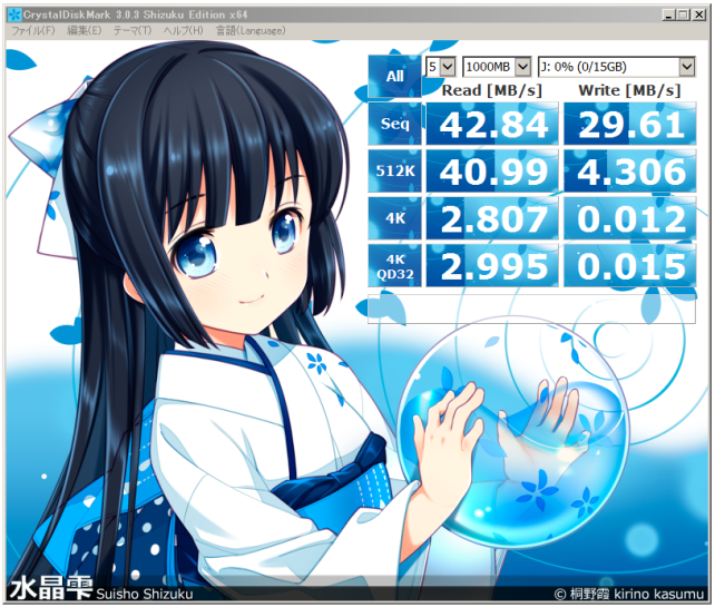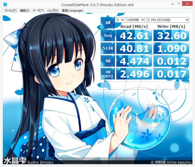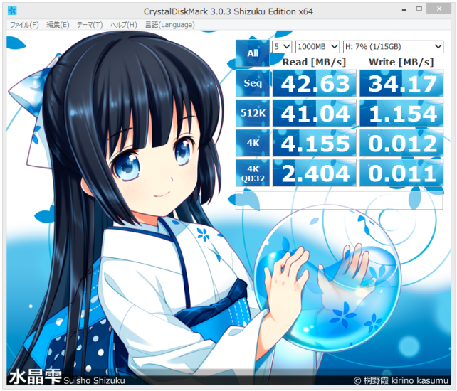 ともあれ、基本性能は値段相応で、速度は今時のUSB3.0としては遅い方という結果になりました。