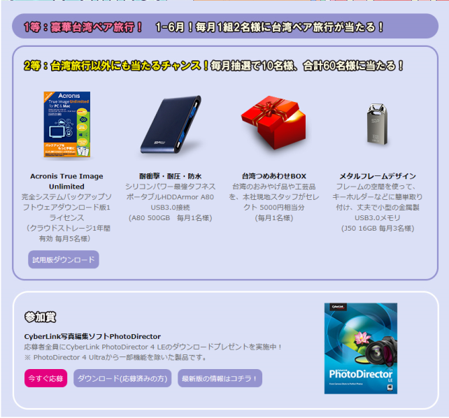 シリコンパワー製品を買うと毎月抽選で台湾ペア旅行が当たる!