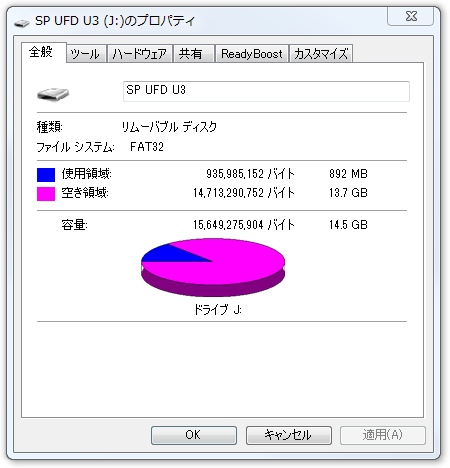 パッケージ破いてそのまま刺し、とりあえず、ちゃんと認識しているか?確認します。