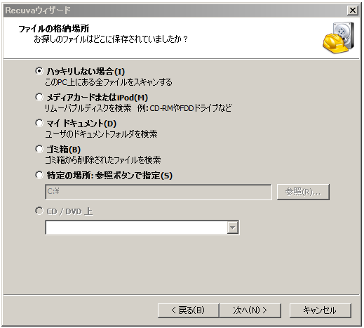 どういったファイルを復元し、どこを探すか?指定するだけでOK