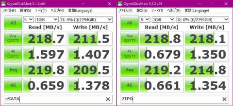 ベンチマーク結果を見ると、eSATA で繋いだ時と極端に遅くなることもなく、想像以上に使えそうだと感じました。