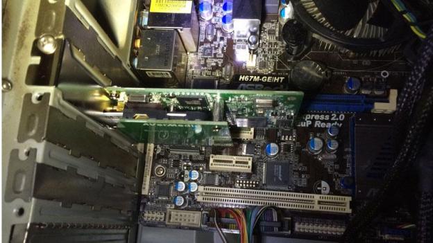 チューナー部品の基板とカードリーダー部品の基板が重なって