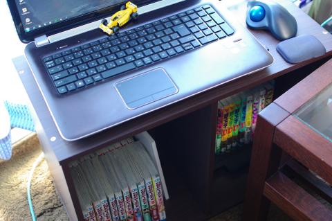 カラーボックスの内部は、部屋に散乱してたコミックを収納してみました。