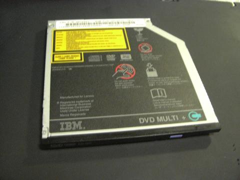 ThinkPad T43に付いていたドライブです。軽量・薄型・大画面を目指すTシリーズでは、安いRシリーズとは違い、薄型のドライブが採用されています。その差は僅か3mmですが、14インチモデルのT43の厚さが27mm~31mmなのに対し、同じ液晶サイズのR52は34mm~37mmとなるので、納得です。自分のR52は15インチなので、最厚部はなんと40mm近くあります。
