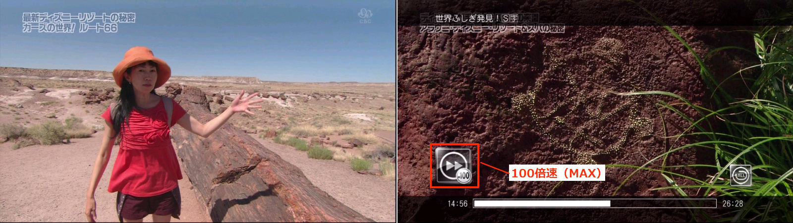 しかも、驚いたことに早送り・巻き戻しがMAX100倍速まで対応している。