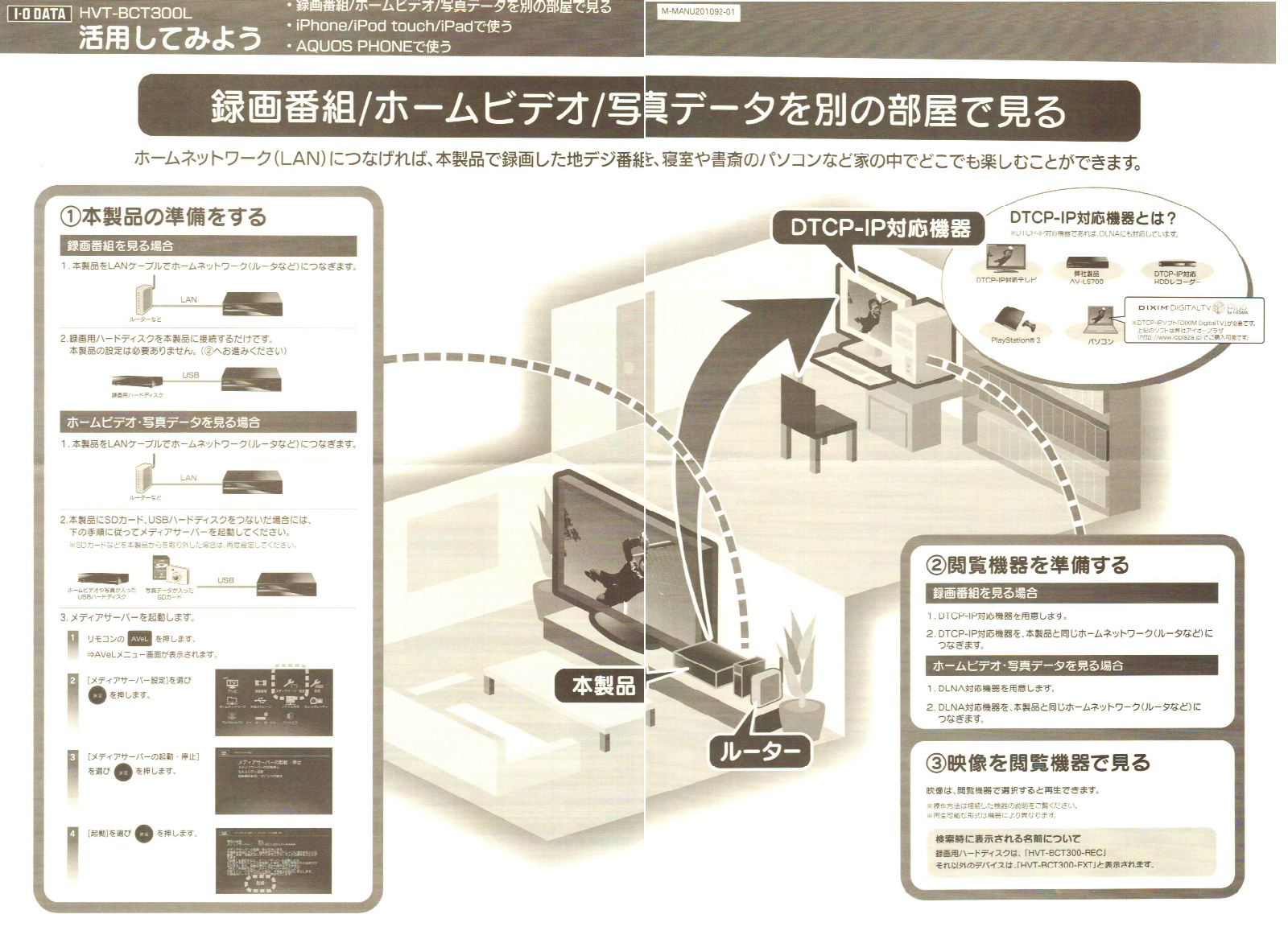 (1) USBハードディスクへ録画して、別室テレビ(PC)へ配信・視聴。