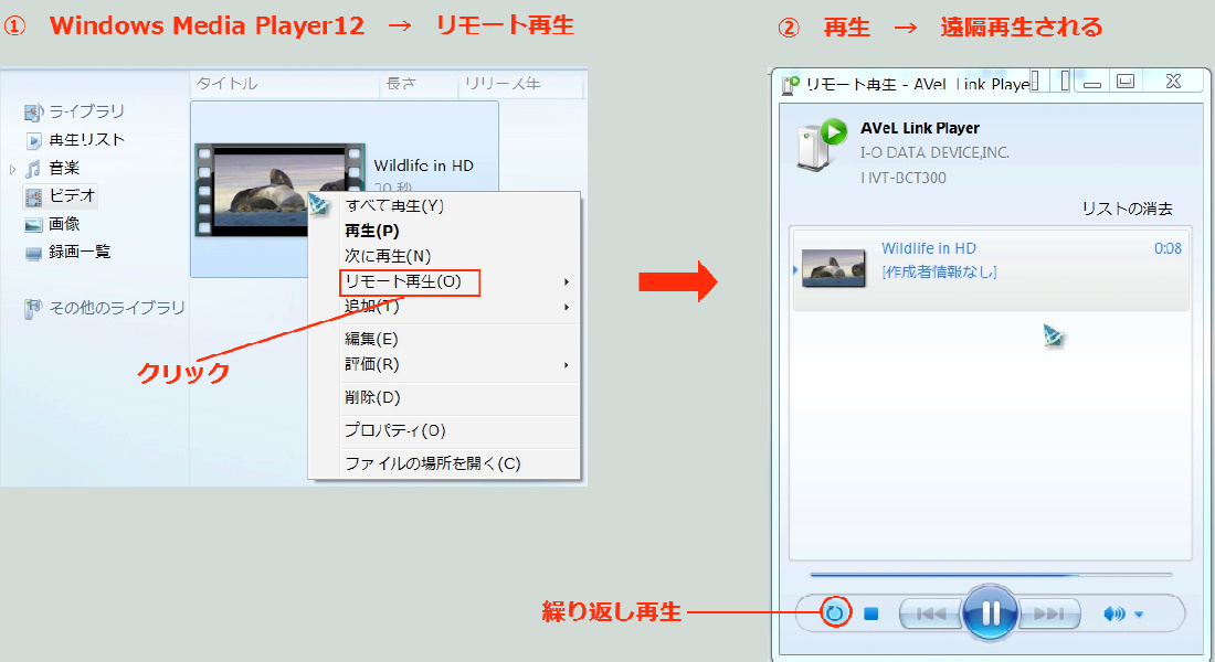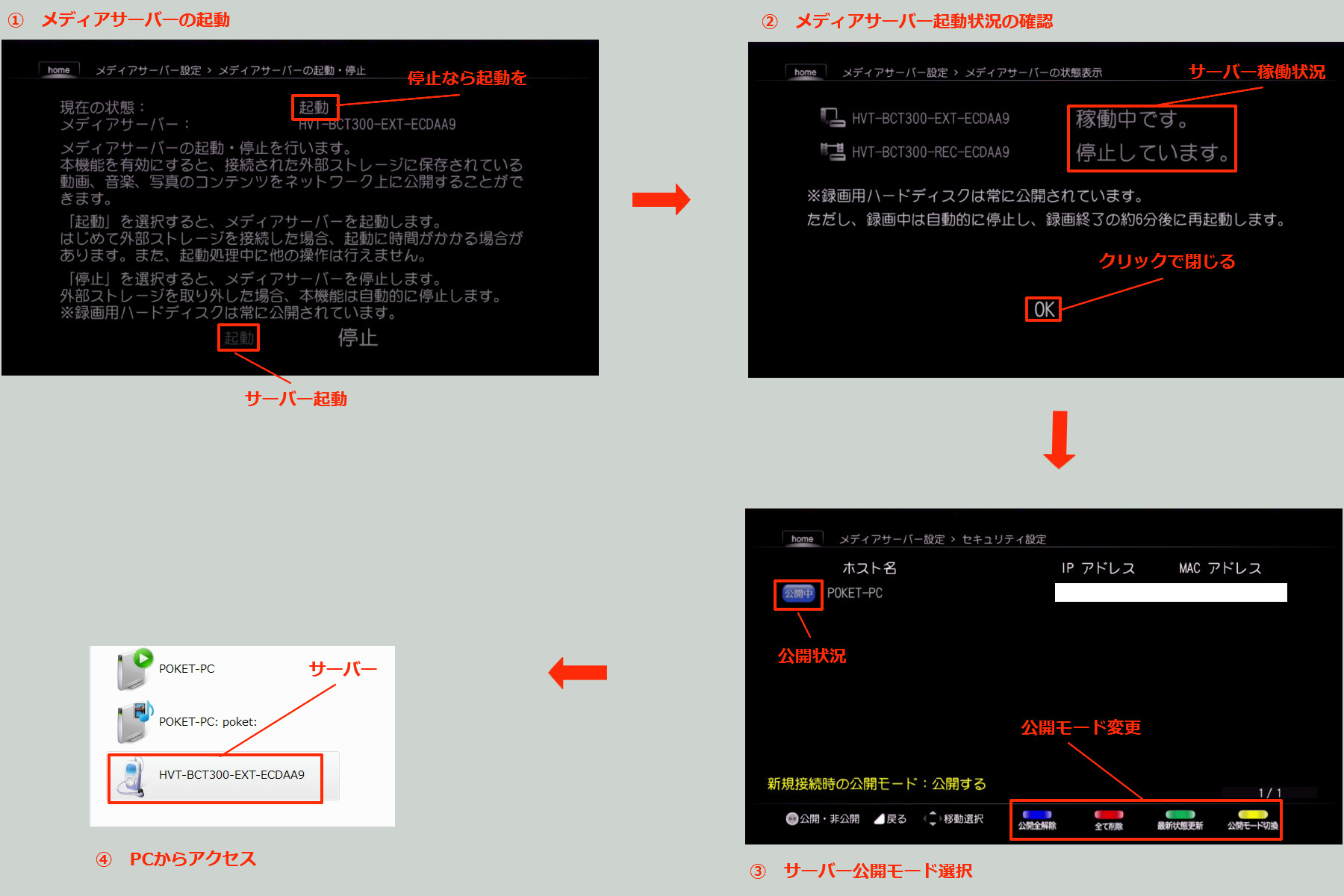 ⑦ ファイル共有 : 共有フォルダ内のコンテンツ再生