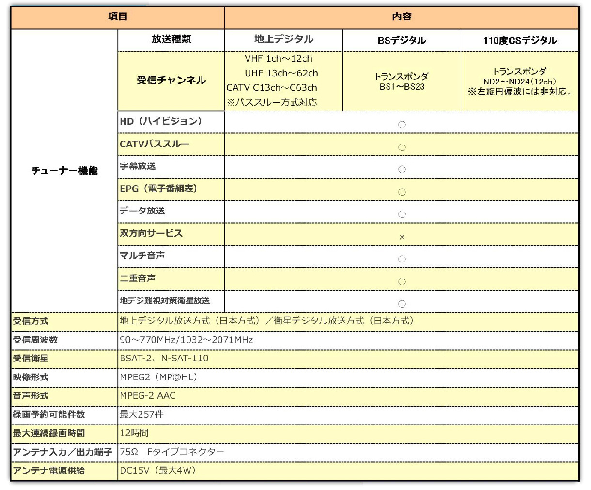 ・ ダビング10対応(コピー9回、ムーブ1回)