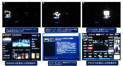 外部ストレージの再生は前述した通り、USB-HDD(録画用にフォーマットした物以外)、SDカードが使える、つまりパソコン用の外付けHDD、カメラ用のSDカードが使えるわけである、シュチュエーションを考えると、デジカメで撮った写真も動画も家族みんなでリビングのTVで大きな画面で楽しめる、といった機能である。デジタルビデオのDATAも録画HDDにコピーできる機能もあるので、運動会等で撮ってきた写真、動画等を夜に一杯飲みながら家族みんなで見られる機能と言えば解りやすいだろう