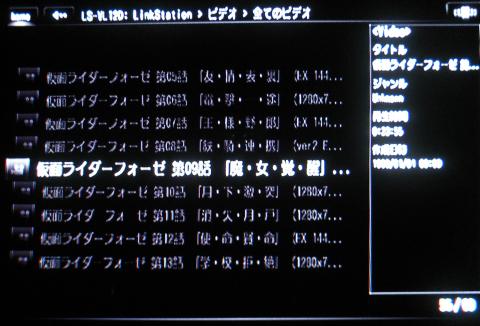 サーバーを選択するとHDD等の中には入れる、ここで再生できるファイルは、色が付くが、再生できない(著作権等で保護されたファイル)ファイルは色が付かない、色が付くファイルのみ再生出来るというわけである、