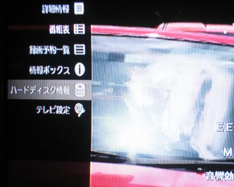 さて、このまず何が入っていても、もはや思い出せないHDDを中を見ることも無くフォーマットしましょう、フォーマットするにはTVを表示した状態でメニューキーを押すとハードディスク情報という項目があるので、リモコンで選択してフォーマットします(フォーマットはすぐに終わる)