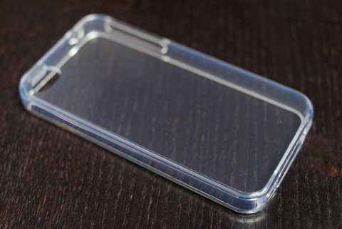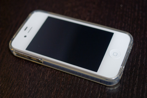 iPhone4の時は黒の半透明のケースを使用していたんですが、今回はさすがに色付きのケースを使うのはどうかなと思ったので。(^^;