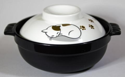 いろんなカッコをして寝ているネコの窪みに合わせ鍋に詰めていき、ちゃんとフタの閉まる状態にするパズルです。