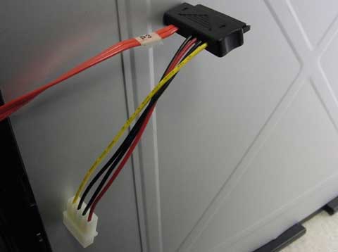 今回のケーブルだと電源はペリフェラル4pinに変換されるので、電源ユニットのソレを接続…