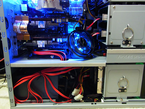 今回使用したケースはAntecのP183-MSI。元々密閉型で静音性は高く、更にHDDはシリコングロメットを挟んだ独自の固定方法で振動対策も万全…なのだが、それでも昨今のコンシューマ向けHDDに慣れた身にはスゴイ音だ。
