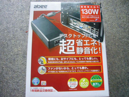 Intel Core i5 3570Kのレビューで100WのACアダプタを使用したが、普通の4CoreのCPUでは容量不足を感じて、このAbee130Wを購入しました。