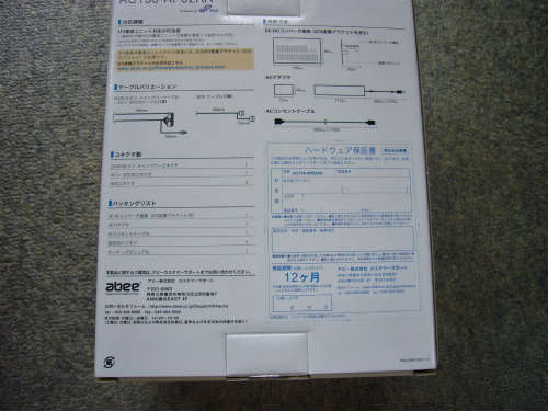 外箱の裏です、簡単な説明と右下の方が保証書ですね。