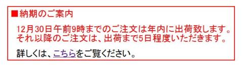 30日AM9:00に注文されていれば、当日出庫ということで、年内に届くはず。