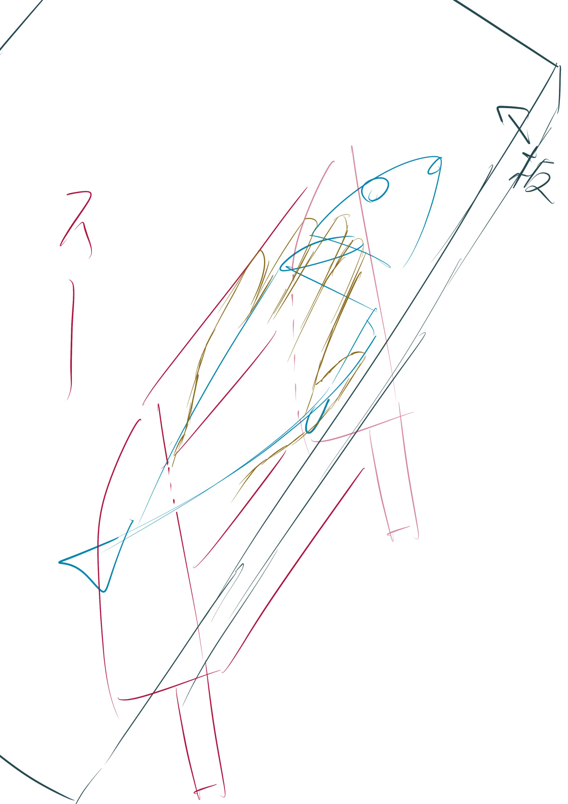 イラストから想像するに、首元から尾にかけて刃を入れるのですね。