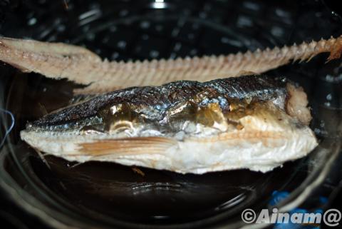 半身と中骨?をヘルシオで焼いて、焼き魚にしました。