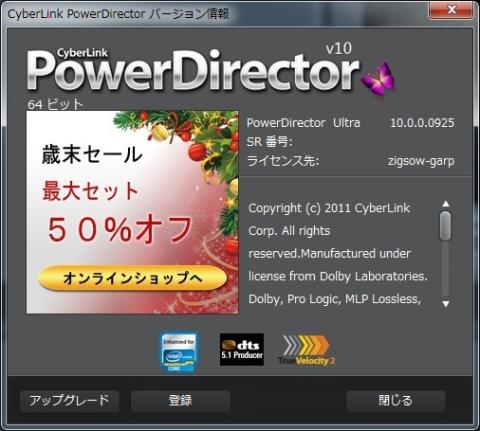 シークレットボーナス「PowerDirector 10 Ultra」同時レビュー権を頂きました。