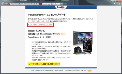 「PowerDirector 10 Ultra」のメインページは下記のアドレスのページです。