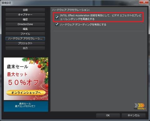 ハードウェアアクセラレーション⇒INTEL Effect Acceleration技術を・・・