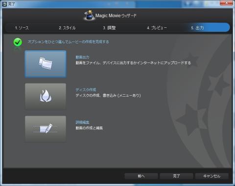 動画出力 を選択すると、詳細な出力モードに移行します。