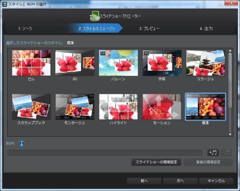 どのような表示形式を選ぶか、スタイル&ミュージックを選択します。