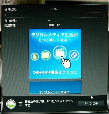 さて、出来あがりを大画面で見たいのでDVDに焼きこみます。