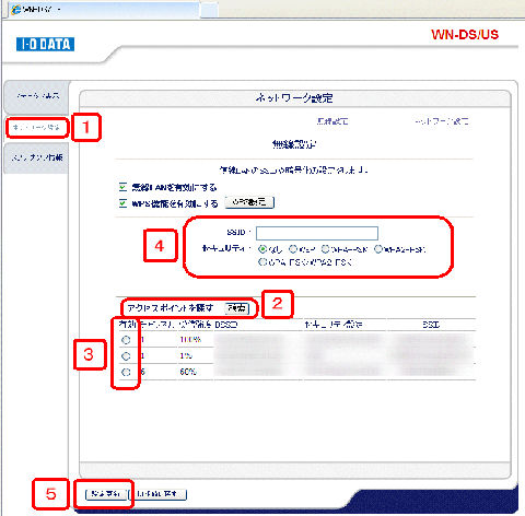 検索できた、無線LANルーターが表示されたら有効ラジオボタンを選択。