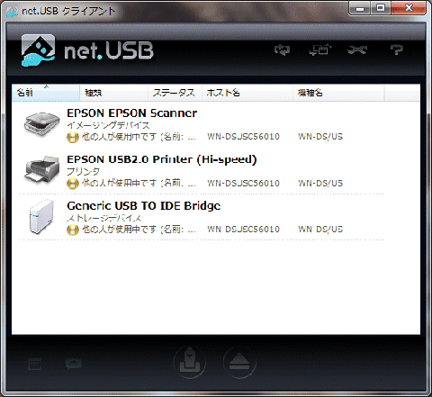 net.USBクライアントの操作ウインドウが表示されます。