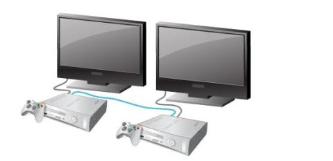 システム リンク プレイは、ケーブルを使用して 2 台の Xbox 360 本体を接続するか、またはネットワークを介して最大 16 台の本体を接続できるマルチプレイヤー ゲームです。リンクされた本体を使用して、複数のプレイヤーが同じゲームをプレイできます。この形式のマルチプレイヤー ゲームは、すべてのプレイヤーが同じ本体に接続する分割画面形式のマルチプレイヤー ゲームとは異なります。