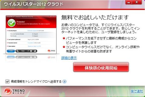 ウイルスバスター2012クラウド体験版