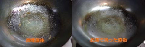 作った感じでは、油が馴染んだ中華鍋なら、お好み焼屋さんの鉄板くらいの後処理のし易い状態かなって思います。